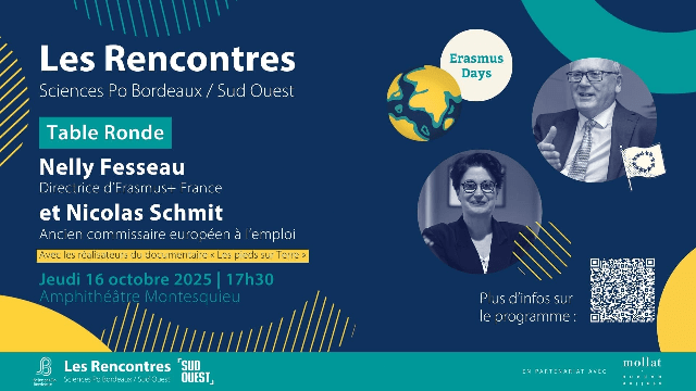 Les Rencontres Sciences Po Bordeaux / Sud Ouest reprennent dès ce jeudi 16 octobre 2025 dans l'amphithéâtre Montesquieu de Sciences Po Bordeaux.